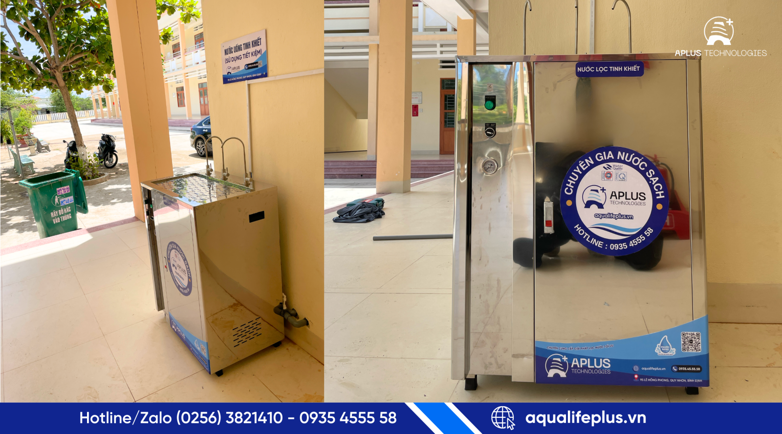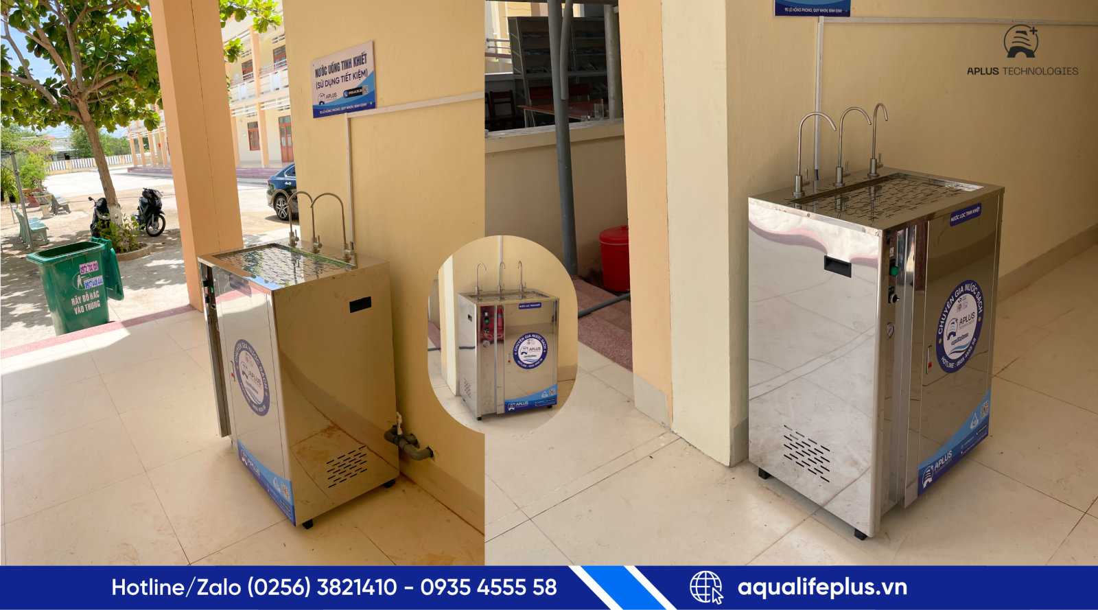 Sau khi được Aplus Technologies khảo sát, tư vấn và thiết kế, mẫu Tủ lọc nước bán công nghiệp Inox 3 vòi – 100L/H đã được lựa chọn nhờ khả năng cung cấp nước tinh khiết liên tục, đáp ứng tốt nhu cầu sử dụng của cả trường.