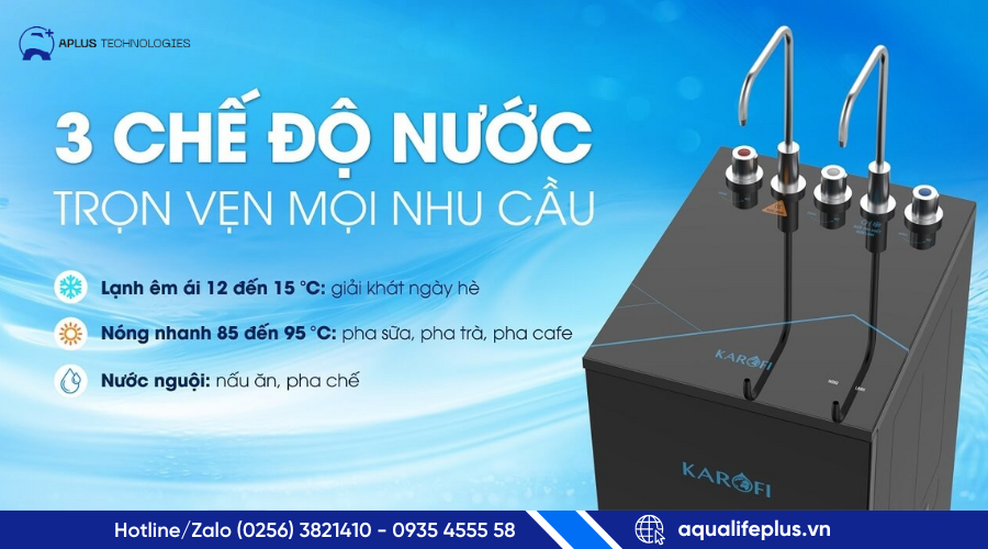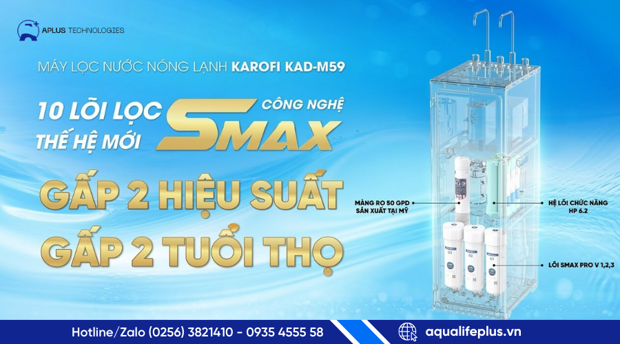 Karofi KAD-M59 là lựa chọn lý tưởng cho gia đình bạn nếu bạn cần một máy lọc nước đa năng, tiện lợi, an toàn và tiết kiệm - từ uống trực tiếp, pha trà, pha sữa, nấu ăn cho đến nước lạnh giải khát. Với hệ lọc 10 lõi công nghệ Smax, màng RO nhập khẩu, nước sau lọc đạt chuẩn QCVN 6‑1:2010/BYT và tính năng bổ sung khoáng + hydrogen, máy không chỉ đảm bảo sạch - mà còn tốt cho sức khỏe. Nếu bạn mua qua Aplus Technologies, bạn sẽ nhận được dịch vụ chuyên nghiệp, bảo hành dài hạn và sự hỗ trợ tận tâm.