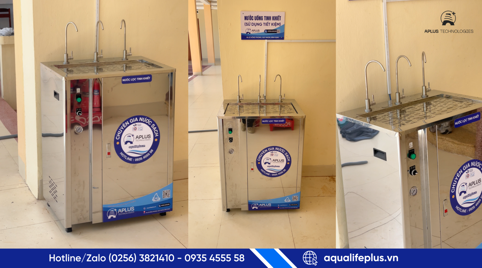 Sau khi được Aplus Technologies khảo sát, tư vấn và thiết kế, mẫu Tủ lọc nước bán công nghiệp Inox 3 vòi – 100L/H đã được lựa chọn nhờ khả năng cung cấp nước tinh khiết liên tục, đáp ứng tốt nhu cầu sử dụng của cả trường.
