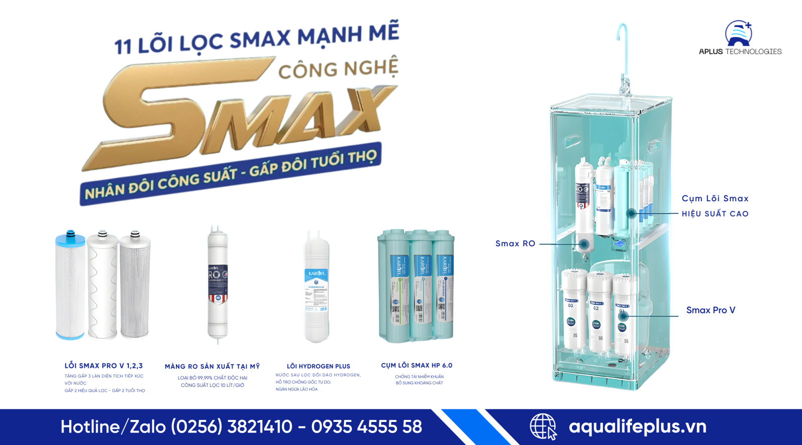 - Hệ thống 10 lõi lọc cao cấp, bao gồm lõi chức năng Hydrogen, Nano Silver, khoáng đá tự nhiên... giúp tăng vị ngọt tự nhiên và cải thiện chất lượng nước uống.
