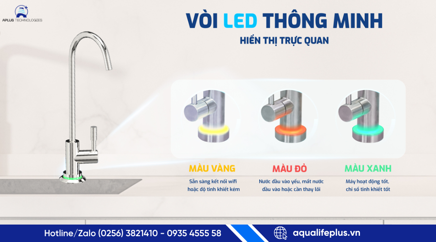 - Vòi LED thông minh cho phép người dùng dễ dàng quan sát chất lượng nước ngay tại vòi.